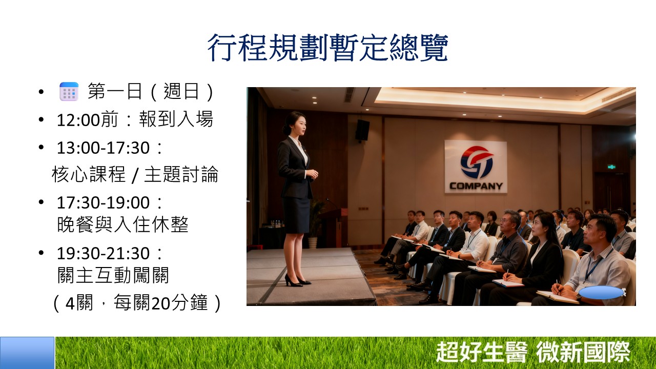 ✅ 含一晚餐、一早餐、一午餐、會議場地