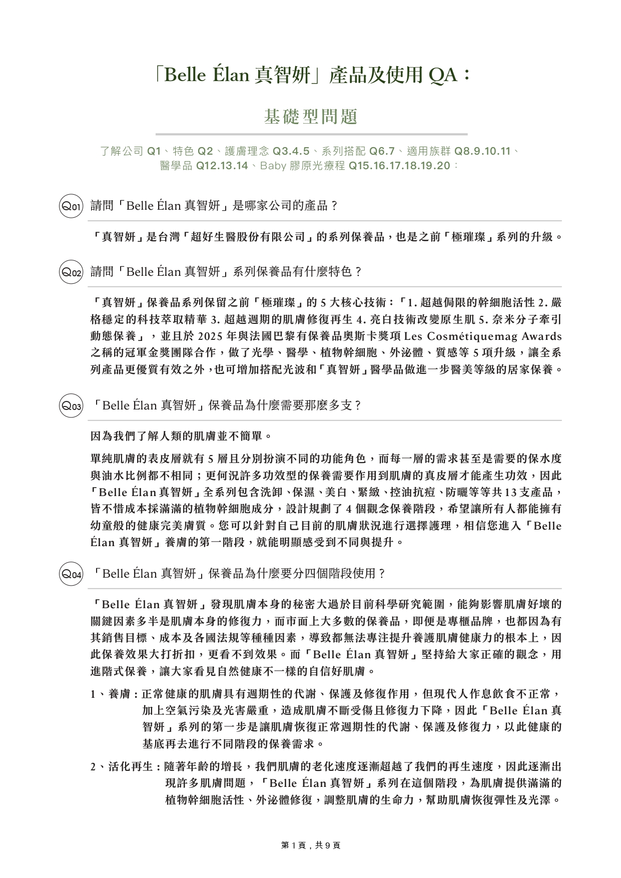 Belle Élan 真智妍 產品及療程問答集(文字)