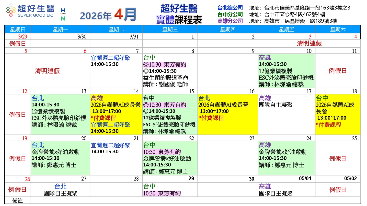實體課行事曆