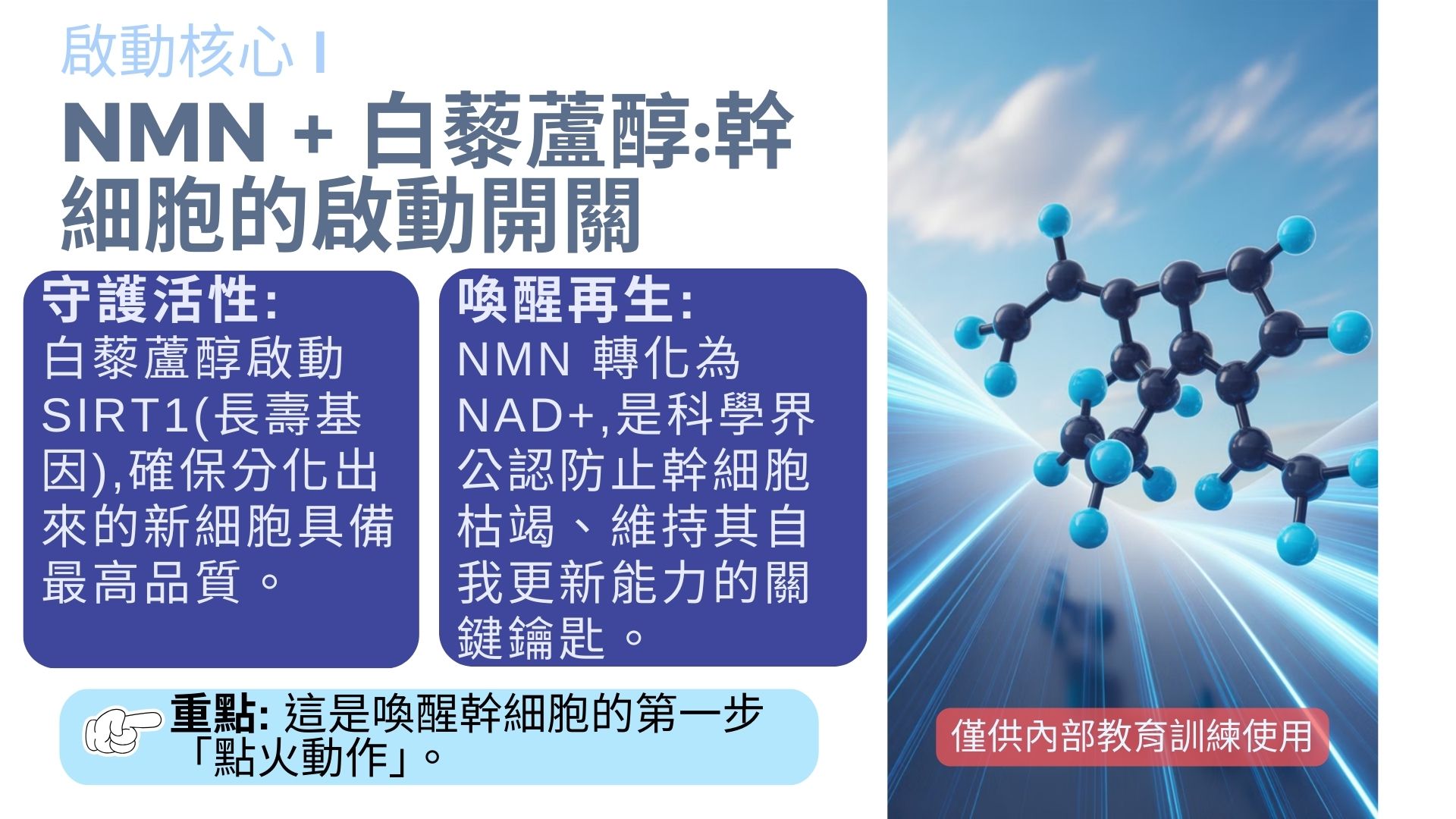 直接提供 β-NMN。像直接把電池充飽,精準啟動修復核心。