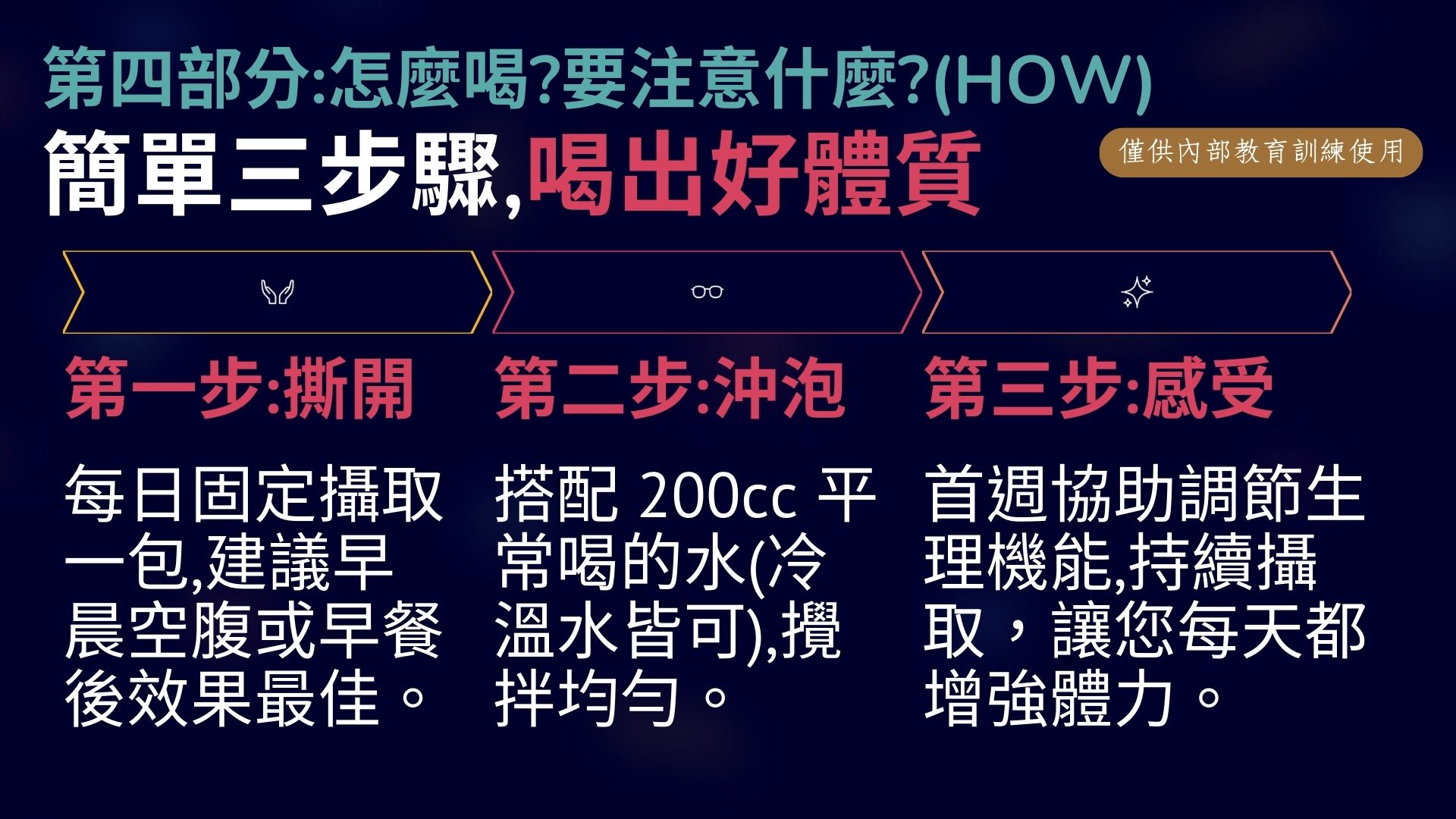 - 分量:初期每天「半包」,搭配 300cc 溫開水。